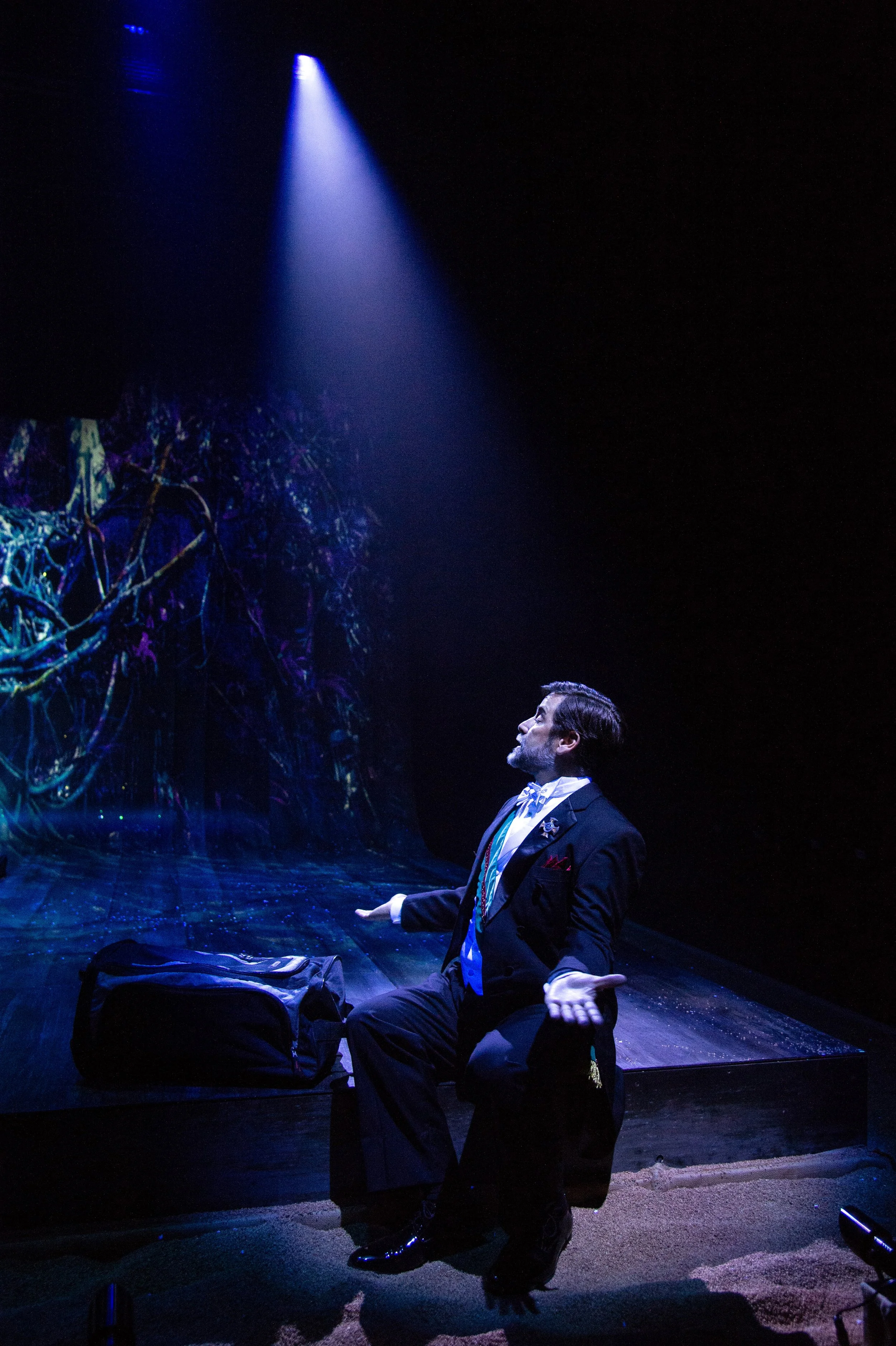 John Bixler as Sebastian in the Utah Shakespeare Festival’s 2022 production of THE TEMPEST (Photo by Karl Hugh. Copyright Utah Shakespeare Festival 2022.)